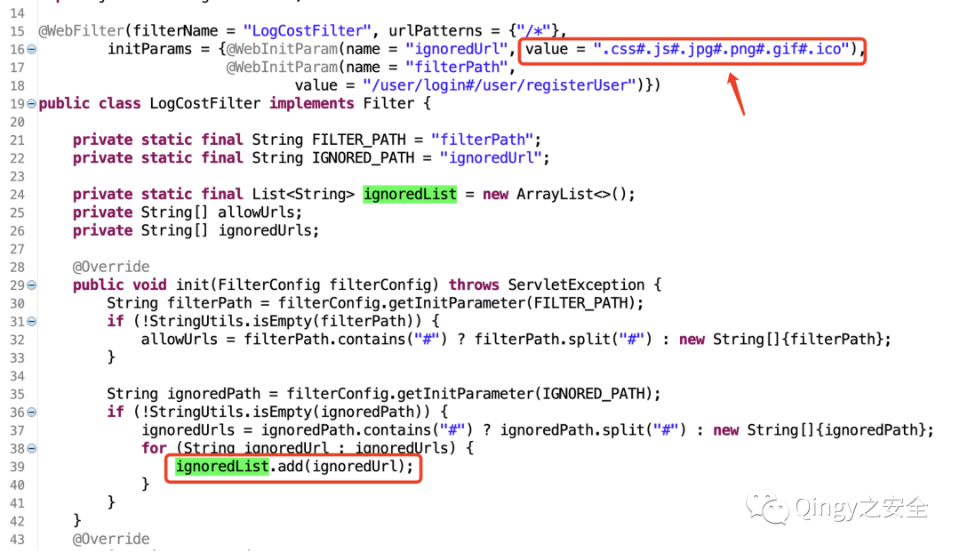 我们去寻找ignoredList,发现它在同一文件内,如下: