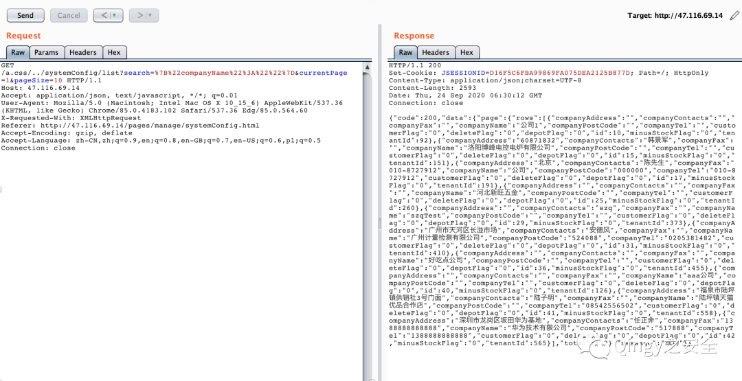 GET /a.css/../systemConfig/list?search=%7B%22companyName%22%3A%22%22%7D¤tPage=1&pageSize=10 HTTP/1.1