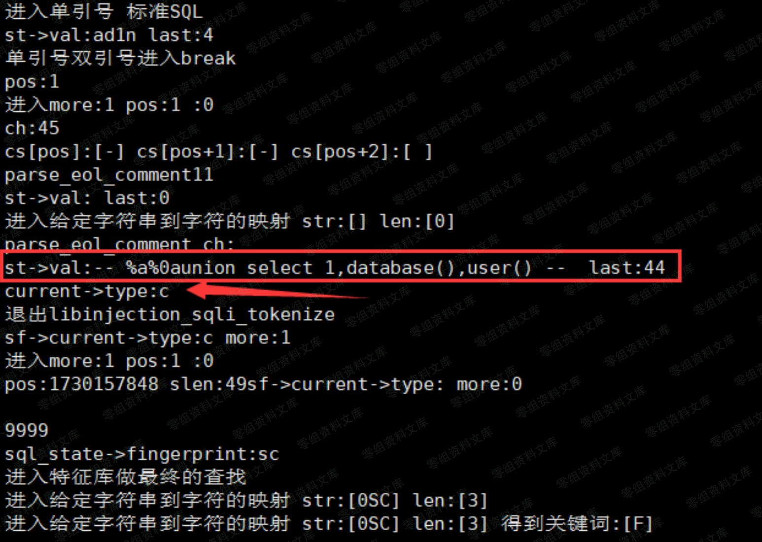 然后上面是一个单引号的标准SQL 的匹配他的一个核心点在于如下 函数libinjection\_sqli\_tokenize