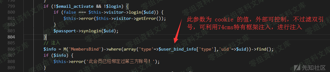 ucenter=bind // 必须为bind因为要靠他,获取cookie(members_uc_info)并且合并为$data数组进行利用