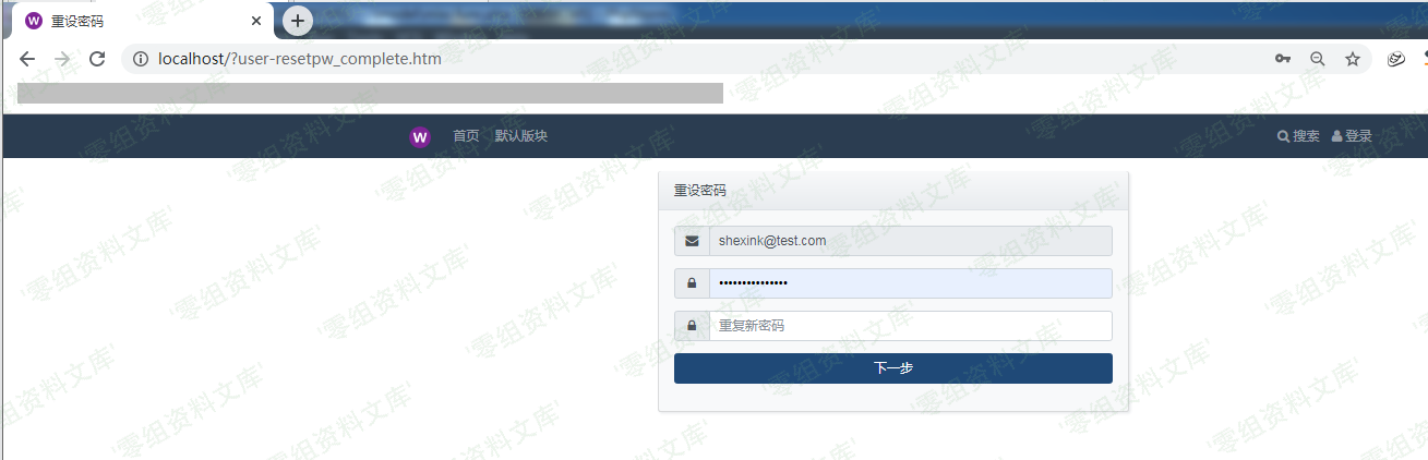 回到第一个标签页,刷新页面可以发现当前SESSION中存储的密码重置用户邮箱已经变为管理员用户邮箱(非必须刷新,密码重置第三部中邮箱取自SESSION,并非提交参数),我们提交重设密码请求后,即可更改管理员用户密码,如下图所示: