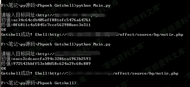 print (“Getshell成功! Shell:” + ur + “/effect/source/bg/mstir.php”)