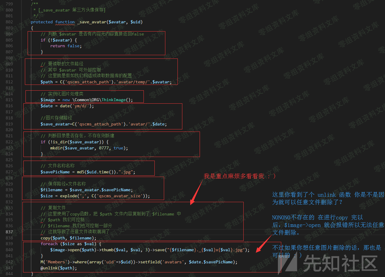 如果不想看图片注释的话,我这里简单的说一下。812行使用\$avatar拼接形成\$path830行使用了\$save\_avatar+\$savePicName; 生成了\$filename838行,使用了copy函数,把\$path文件内容复制到了\$filename中。而 \$avatar 和 \$uid 都是我们刚好可以控制的变量并且生成的文件名称是\$uid+time() 然后md5 一下 拼接 .jpg这个情况就很舒服了。写个小工具跑一下就好了,小工具会在结尾的时候放出来的。好了,让我们继续看下去 : )我们现在既然已经知道了\_save\_avatar