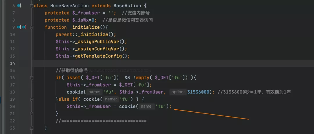在`App/Lib/Action/HomeBaseAction.class.php:16`