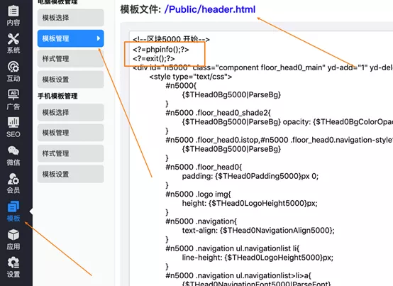 后台模板管理,可以修改模板,但是对`来绕过这个检测。
