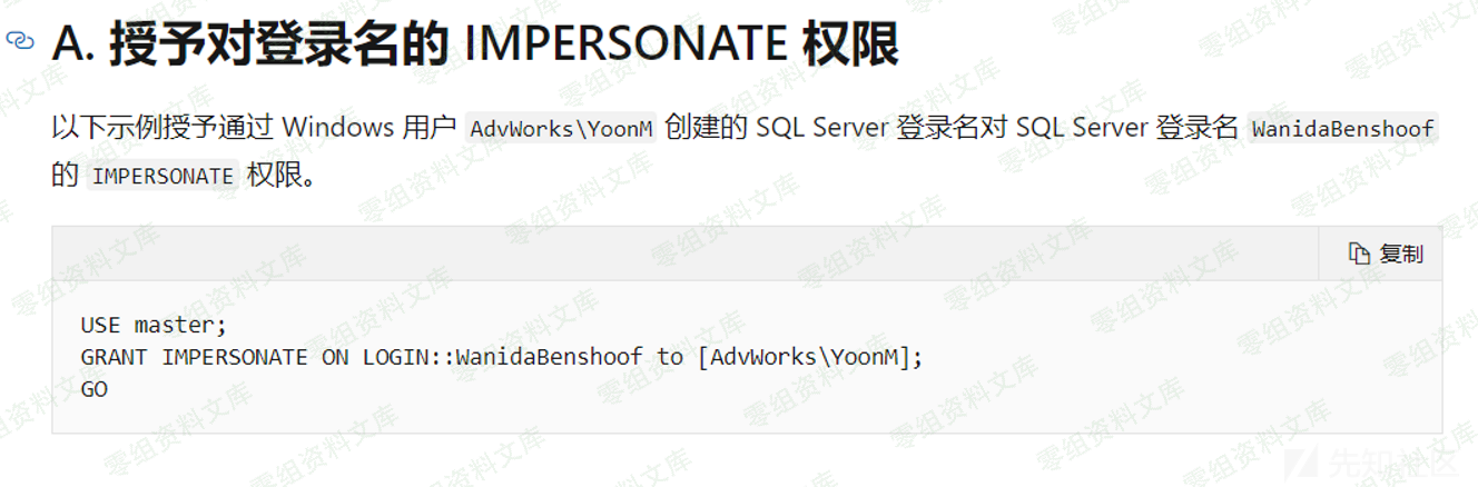 LOGIN意思是授权MyUser1用户对sa,MyUser2,MyUser3用户登录权限,查看sqlserver的文档`https://docs.microsoft.com/zh-cn/sql/t-sql/statements/grant-server-principal-permissions-transact-sql?view=sql-server-ver15`