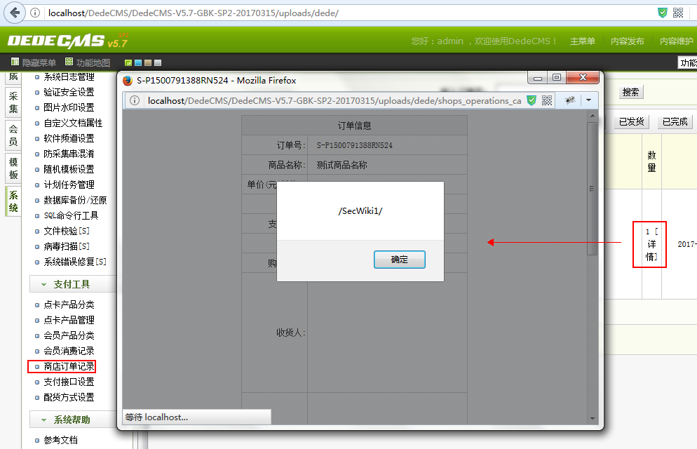 # DedeCMS v5.7 carbuyaction 存儲型XSS漏洞/es