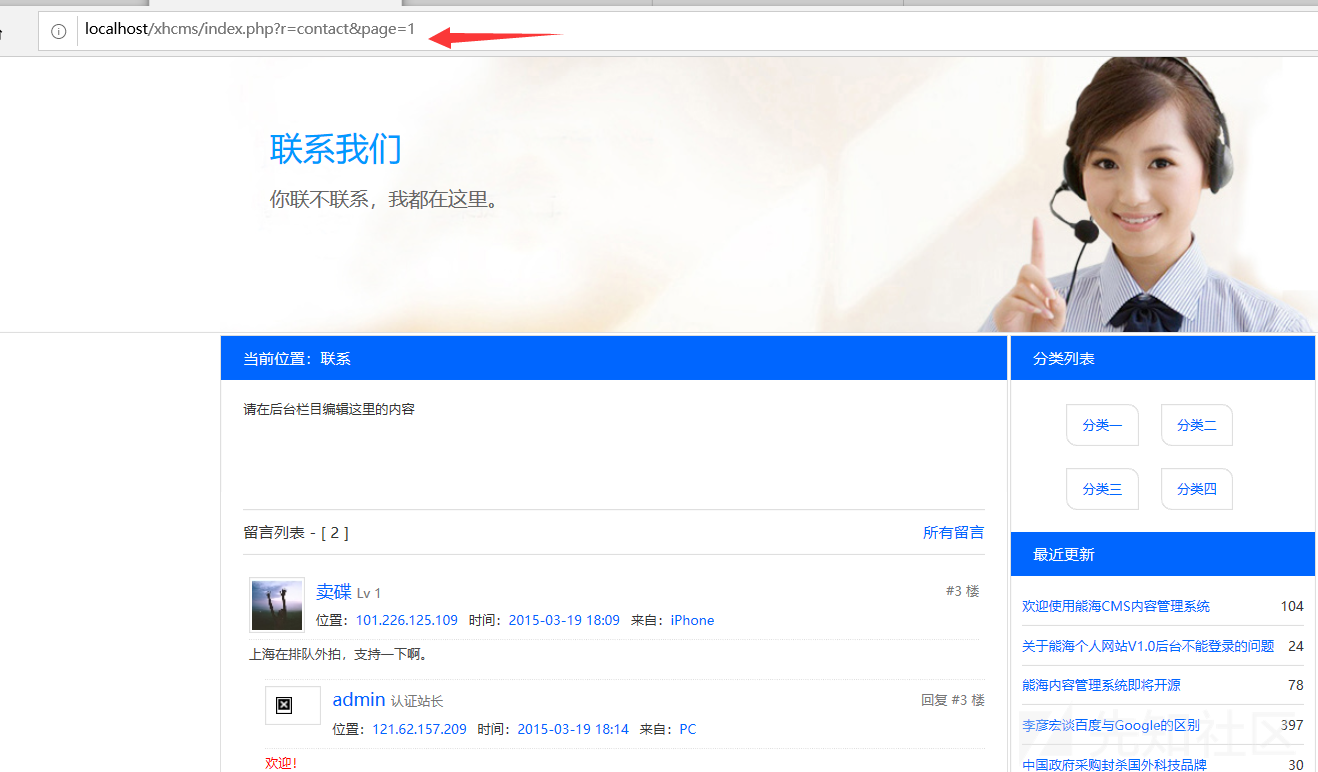 我们访问网址的联系功能,找到了代码对于的page参数,其实就是留言列表的页数。