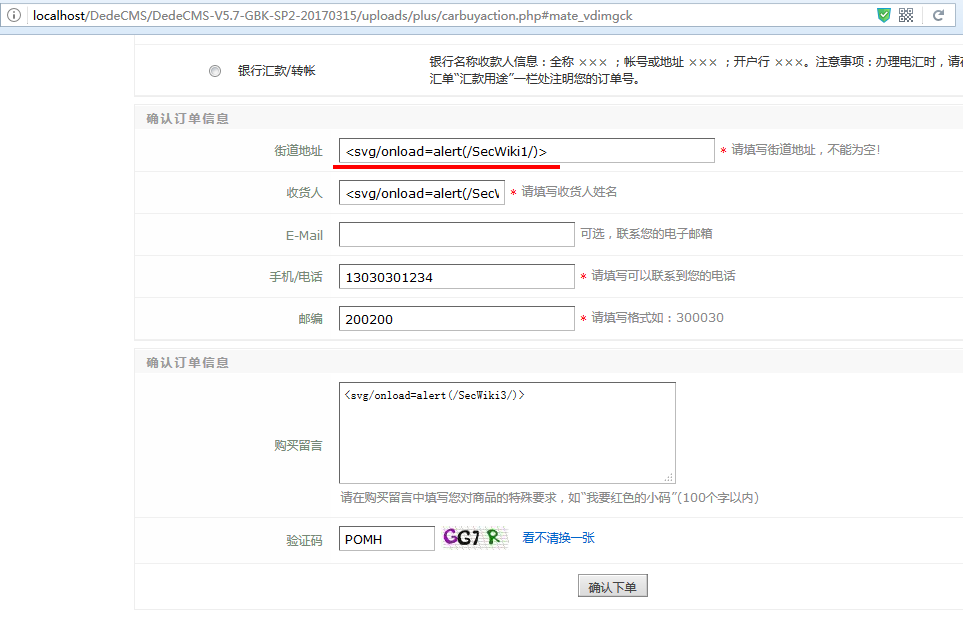 该漏洞 通过用户在编写订单收货地址的相关参数 注入 XSS Payload,导致 前台查看订单的页面和后台管理员查看订单详情的页面都会被 XSS。