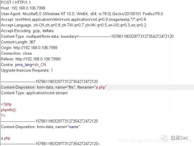 2.上传a.php并抓包