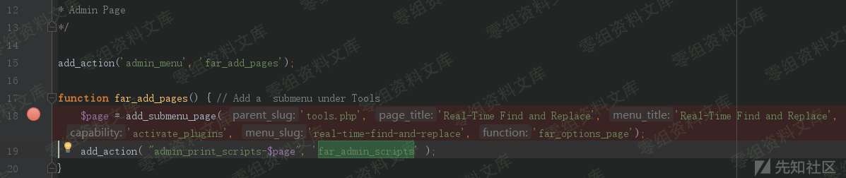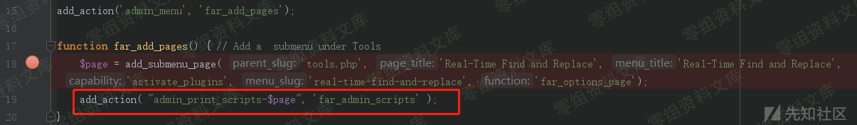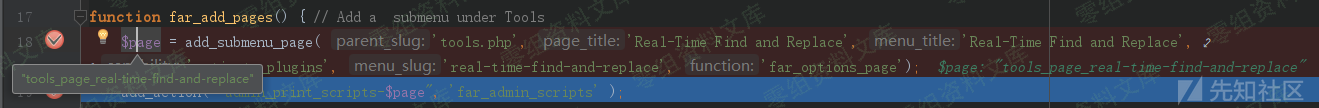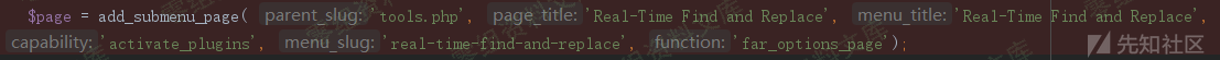这里的\$page值为tools\_page\_real-time-find-and-replace。使用add\_submenu\_page方法注册的子菜单page\_hook都是唯一的,程序也是通过这个值来区分我们注册的不同页面