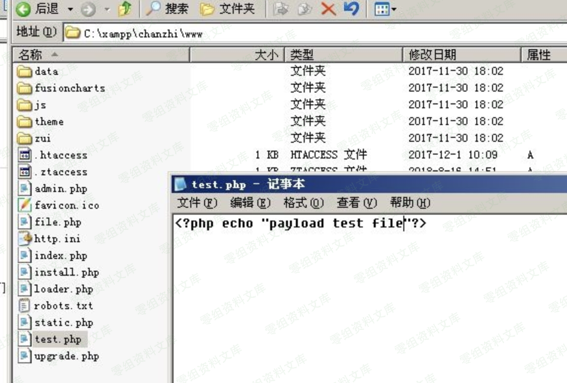 在网站根目录C:\\xampp\\chanzhi\\www新建一个测试文件test.php