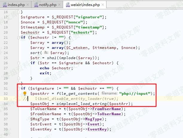 全局搜索`simplexml`,在`weixin/index.php`发现漏洞