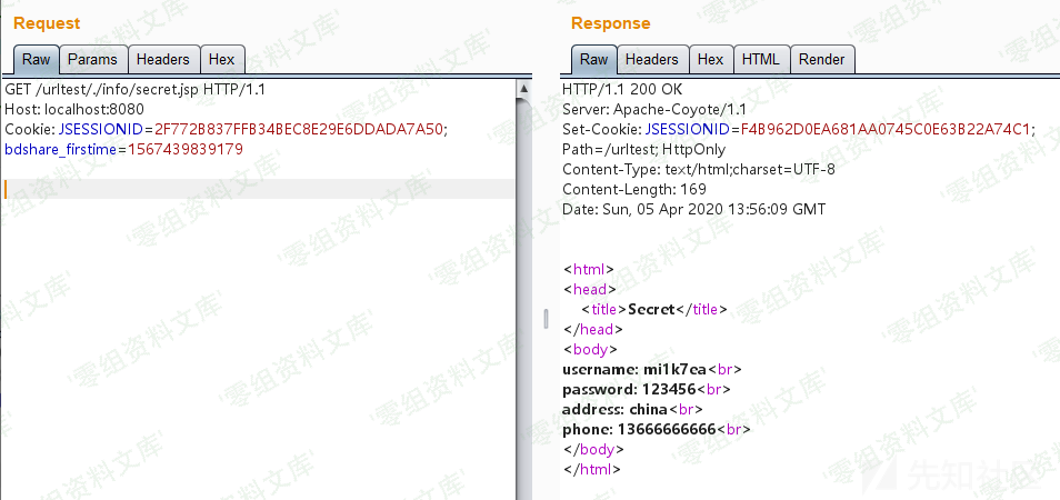 http://localhost:8080/urltest/mi1k7ea/..;/info/secret.jsp