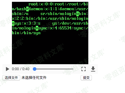 生成`exp.avi`,在`http://url:8080/`上传。后端将会将你上传的视频用ffmpeg转码后显示,转码时因为ffmpeg的任意文件读取漏洞,可将文件信息读取到视频中:
