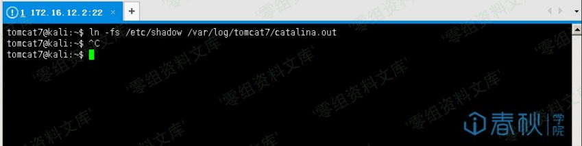 使用命令`ln -fs /etc/shadow /var/log/tomcat7/catalina.out`,这时候就可以在/etc/shadow下创建一个链接,就相当于Windows的快捷方式一样。