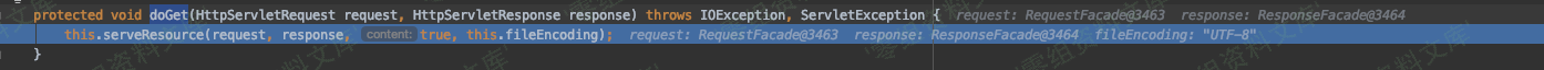 前面是整个 AJP->HTTP 整个过程,继续往下跟入,因为通过 AJP 转换之后,进行的是 HTTP GET 请求,所以来到的自然是是下图中代码位置。