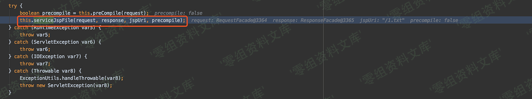 之后便会进入 serviceJspFile 逻辑进行处理。