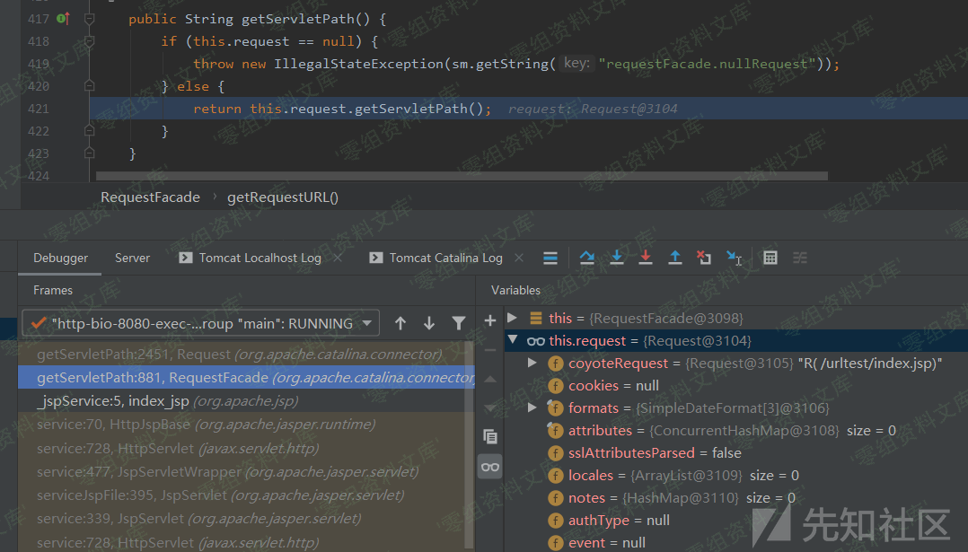 在getServletPath()函数中是调用了Request.getServletPath()函数的: