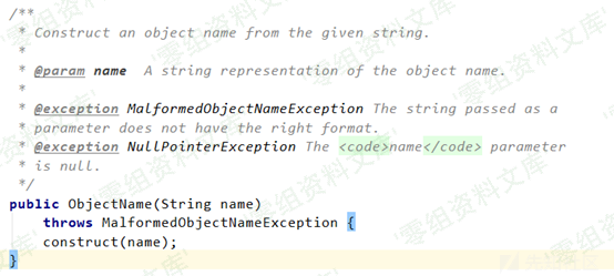 如上图,这里将 exec 后面的第一个 path 节点带进了 javax.management.ObjectName 构造函数中