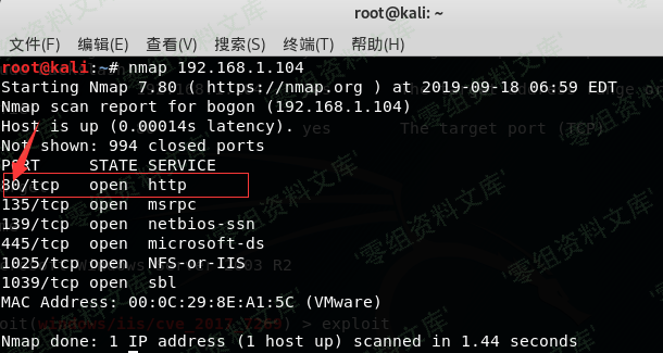 `nmap 192.168.1.104 //扫描192.168.1.104的端口`