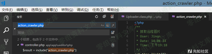 打开文件:MetInfo_v6.1.0\app\app\ueditor\php\action_crawler.php