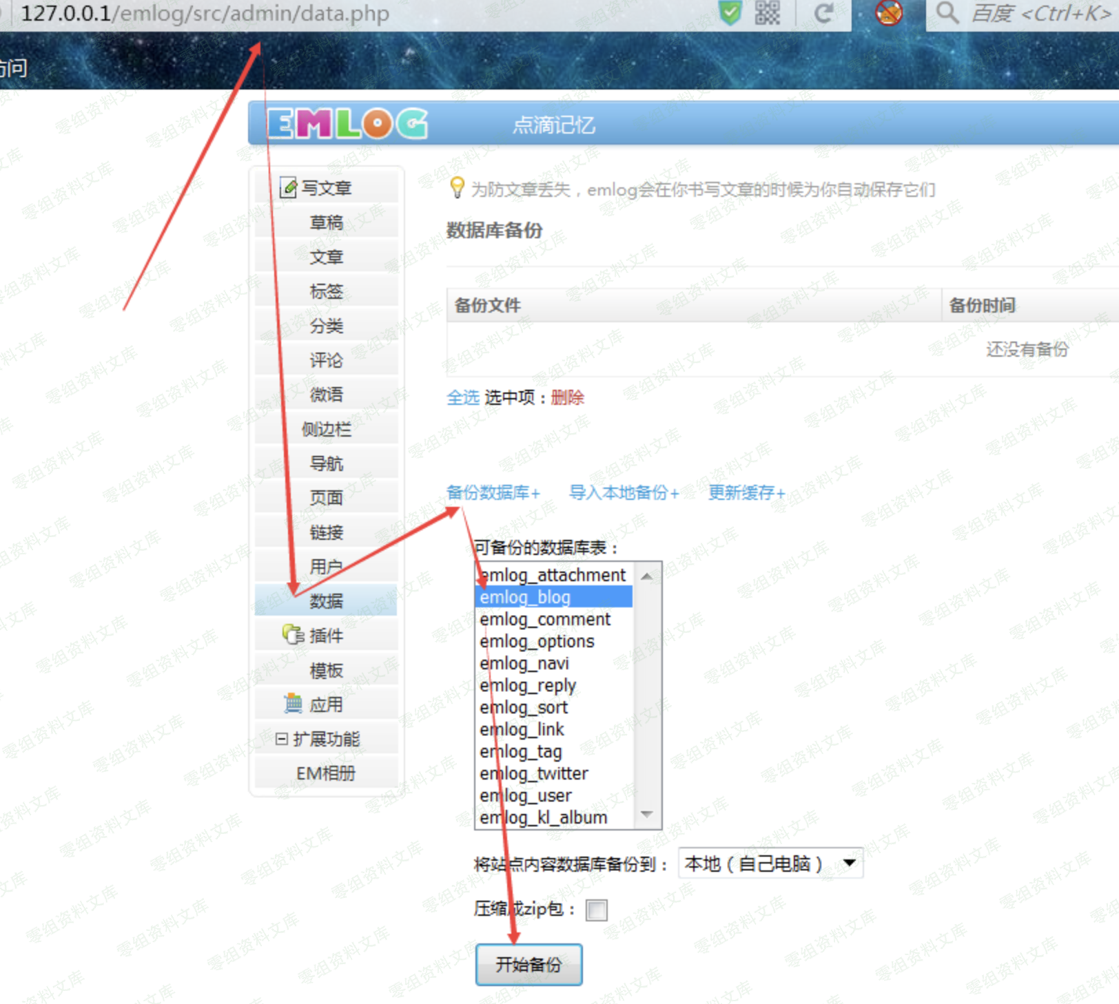 # Emlog 6.0 数据库备份与导入功能导致后台getshell