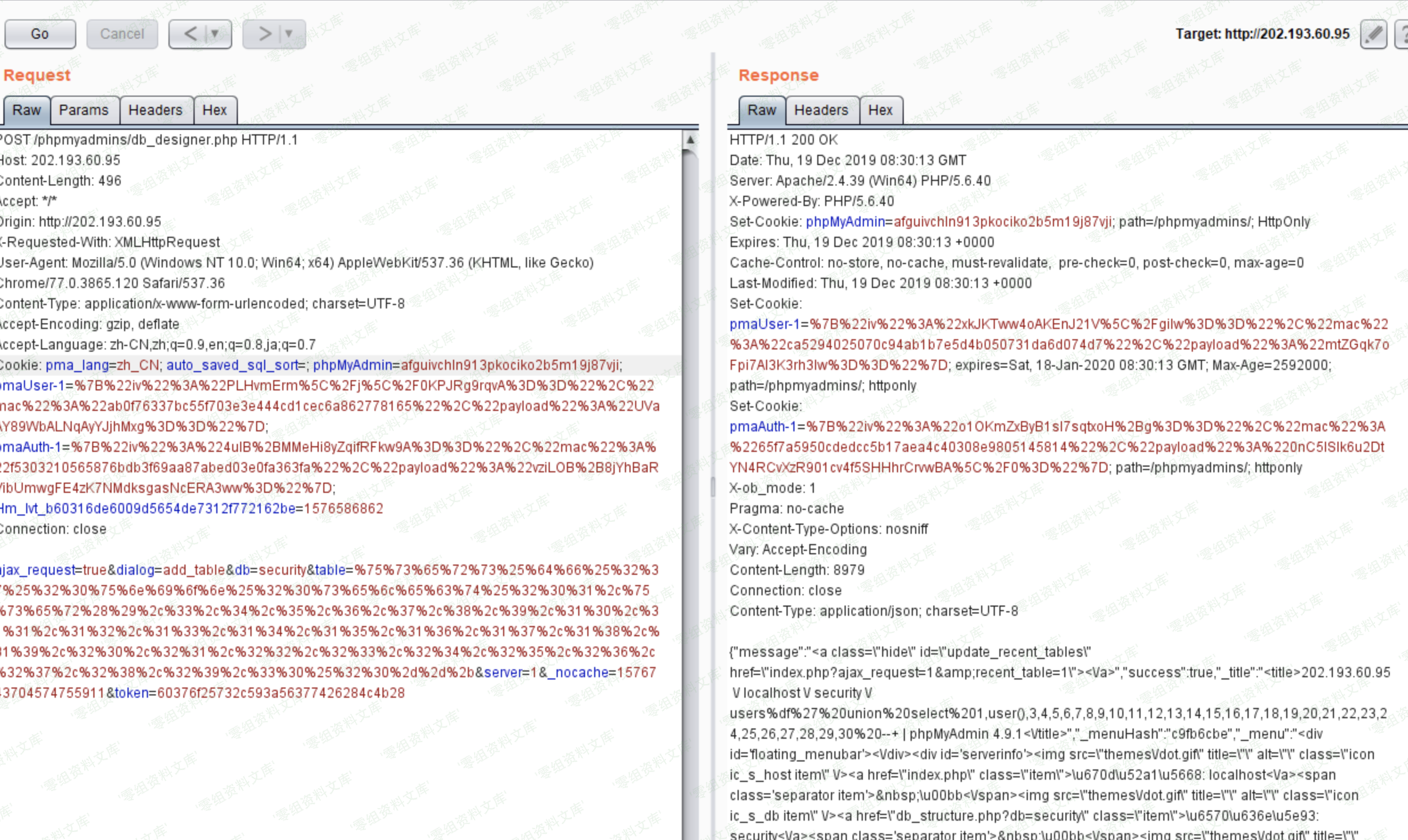 Phpmyadmin <=4.9.2,至少影响到4.7.7。