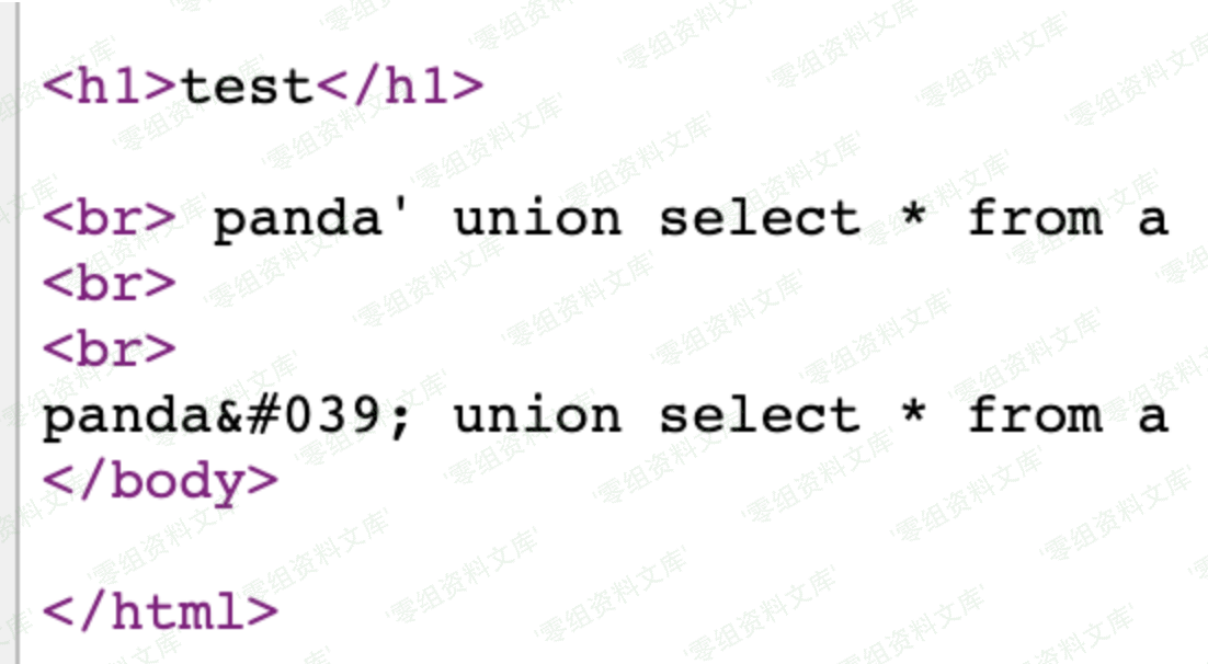echo $twig->render(‘index.html.twig’, [‘name’ => ‘panda\’ union select 1,2, from a’]);