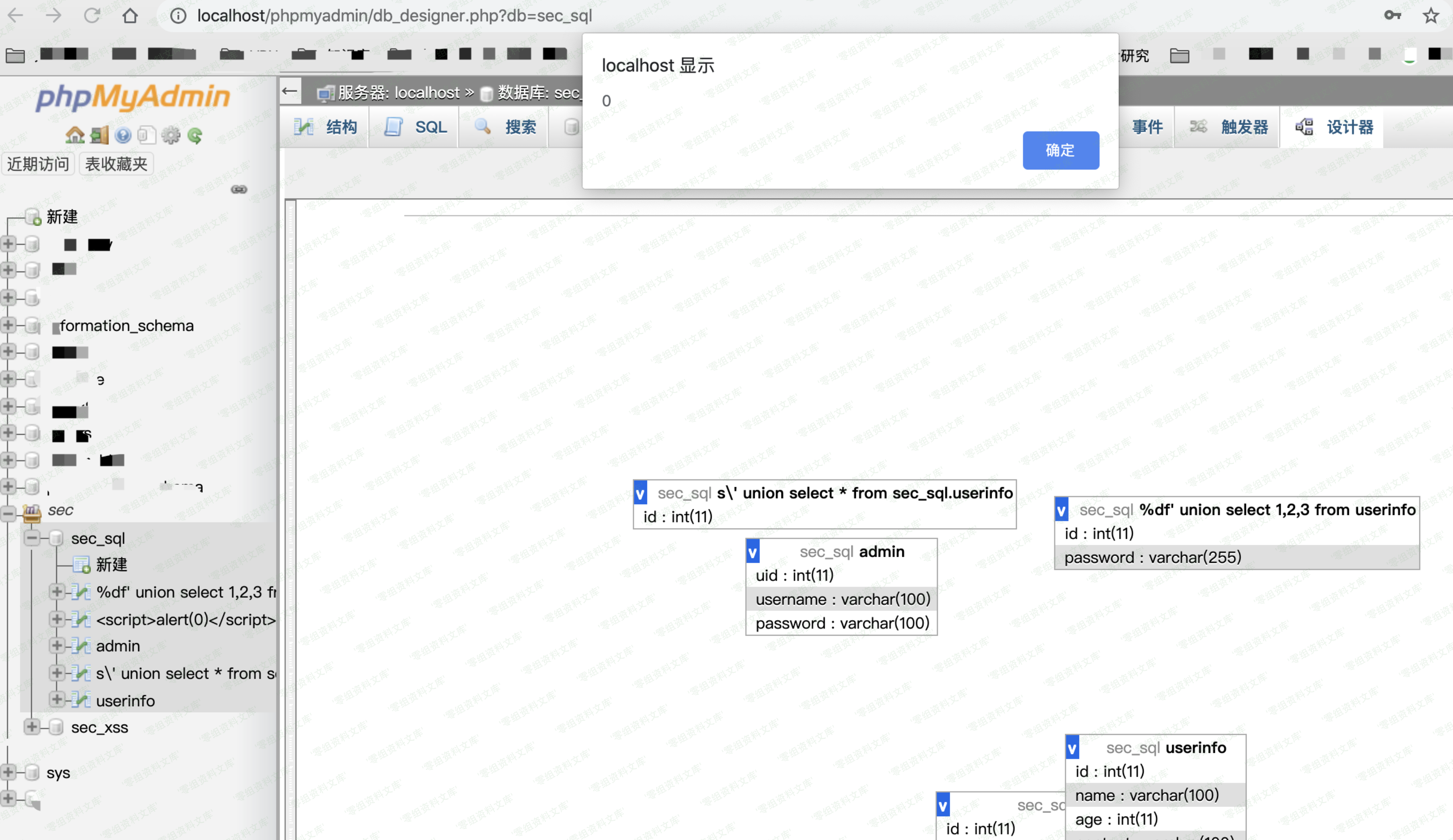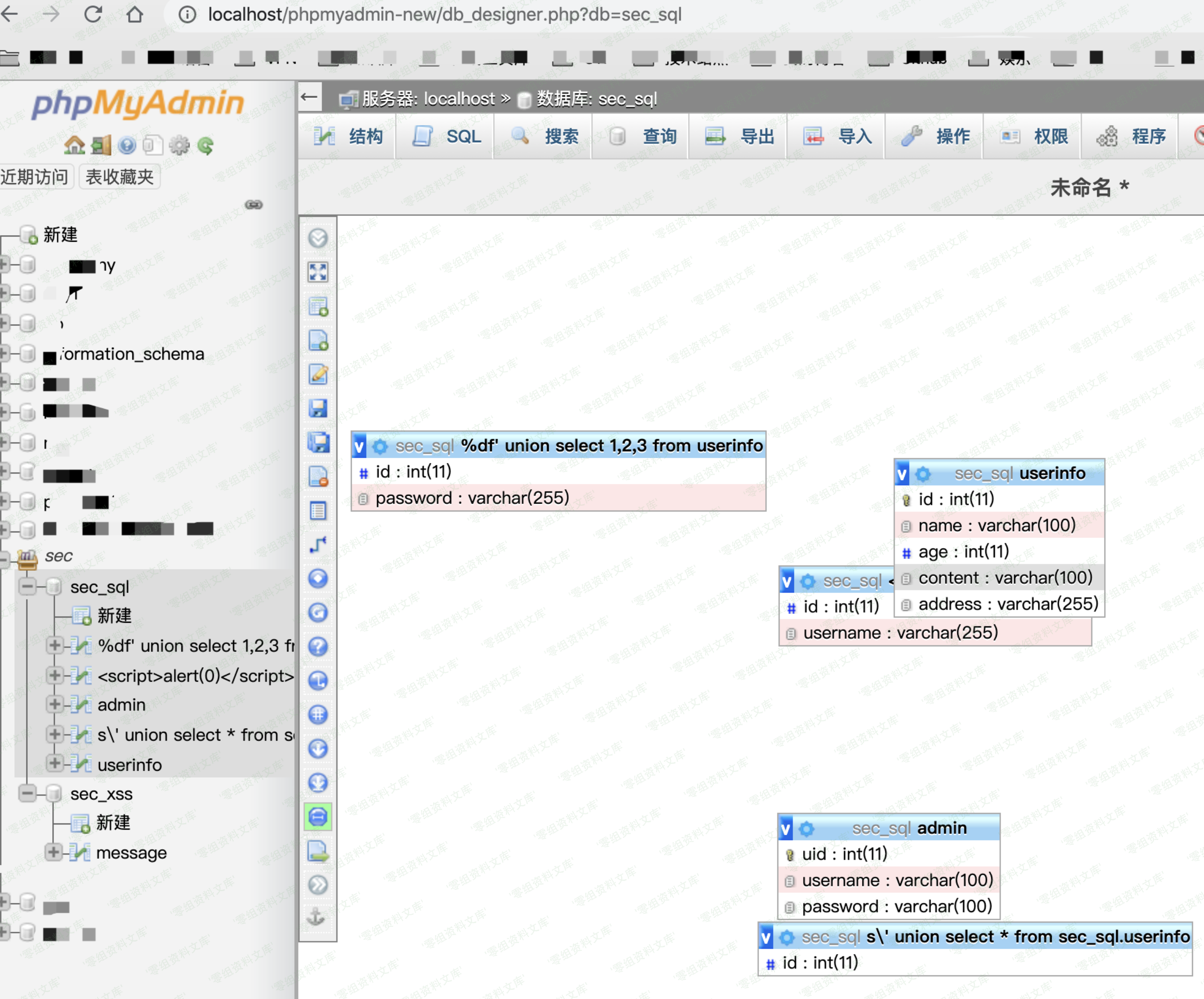 这里的$table_name在 db_designer.php中可控,然而当环境准备好,语句配置好后,却出现了以下错误: