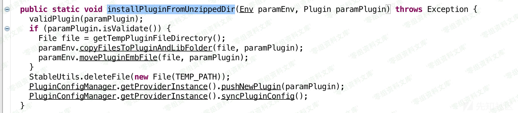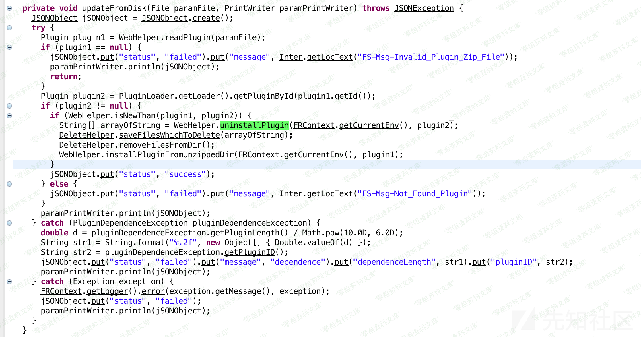 这里在插件管理模块需要更新本地插件,由于会将更新插件和原始插件进行比较,所以当上传一个新的插件时会触发installPluginFromUnzipperDir函数