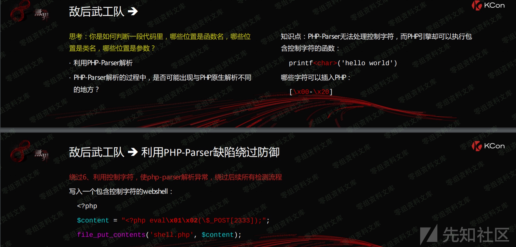 对于第一处if判断,我们可以在函数名和括号之间插入控制字符,如\x01,这样即可绕过该处正则校验,并且可以正常执行php代码,该trick来源于KCon2019的一个议题