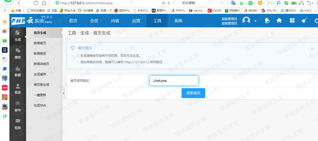 又去翻了下后台功能,发下有个生成功能,并且没有后缀限制。