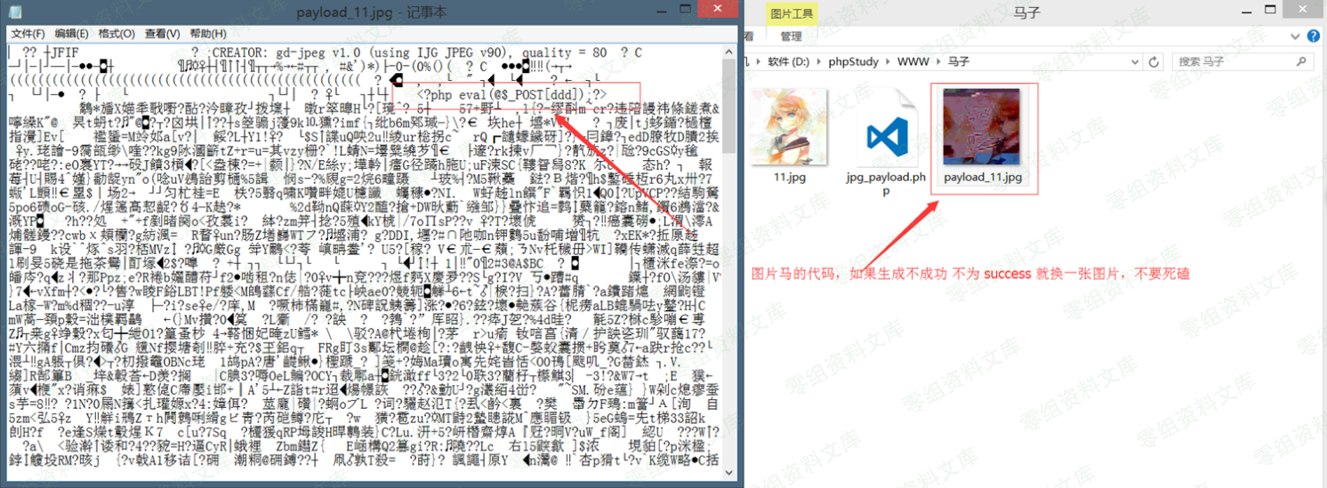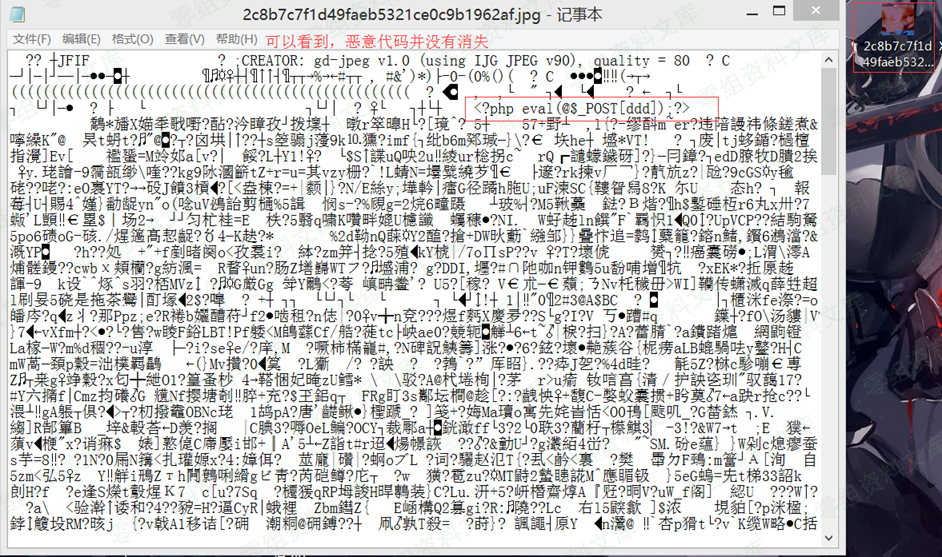 * 3.如果没出错的话,新生成的文件再次经过gd库处理后,仍然能保留webshell代码语句