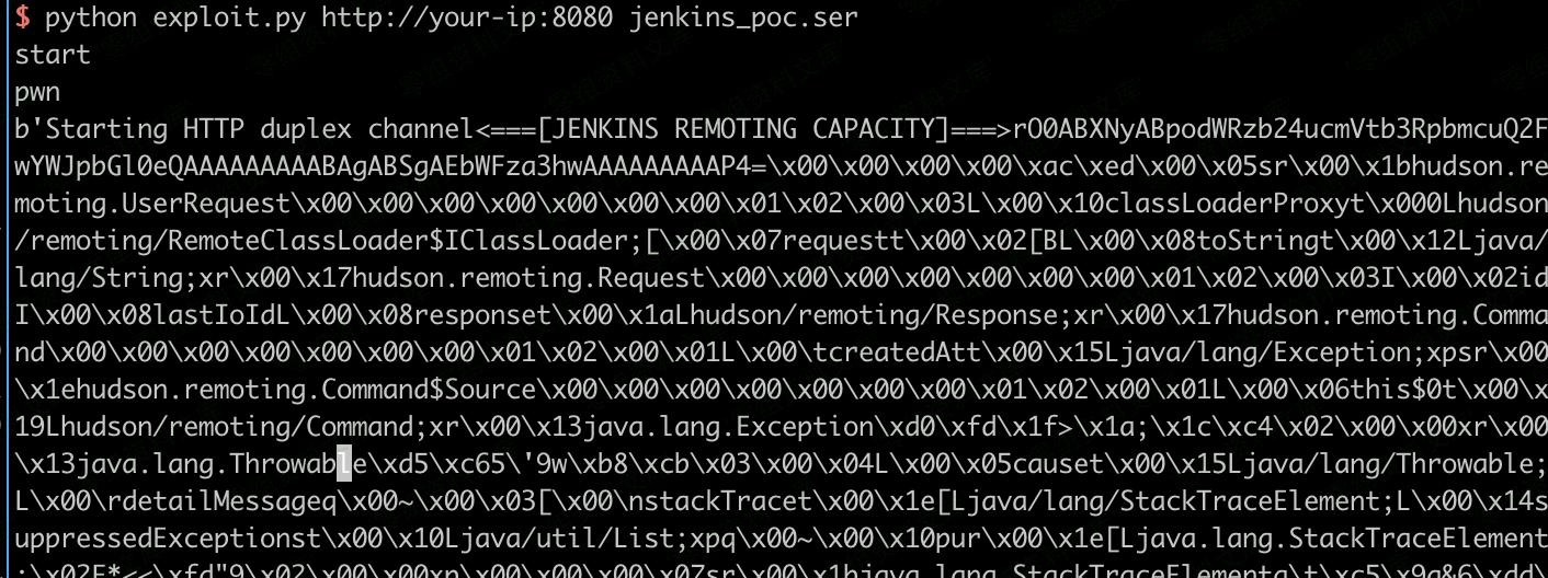 该漏洞存在于使用HTTP协议的双向通信通道的具体实现代码中,Jenkins利用此通道来接收命令,恶意攻击者可以构造恶意攻击参数远程执行命令,从而获取系统权限,造成数据泄露。