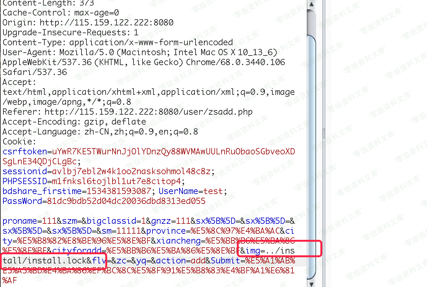 所以向数据库中插入污点数据是很简单的,只要在发布招商信息的时候,抓包,修改掉img的数据即可,这里我们测试/install/install.lock: