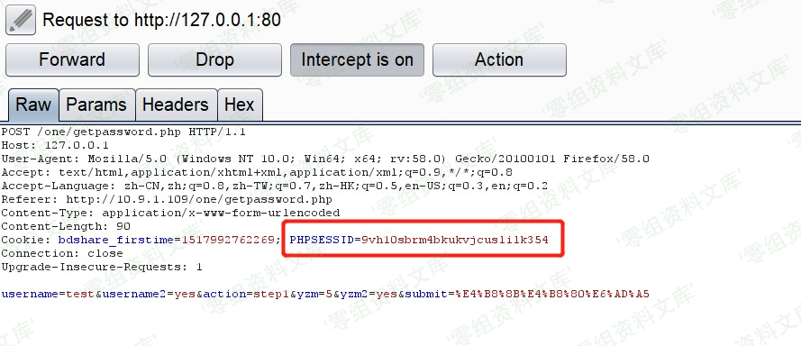 第一步先在找回密码页面输入要修改的用户名,点击下一步,burp拦截。