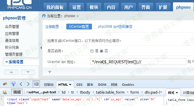 漏洞来自于ROOTDIR/phpsso_server/phpcms/modules/admin/system.php