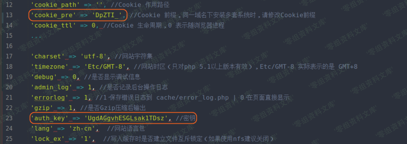 而 pc_base::load_config(‘system’, ‘auth_key’) 的值在网站搭建好后,会存储在 caches/configs/system.php 中,我们可以通过任意文件读取来获得这个值。