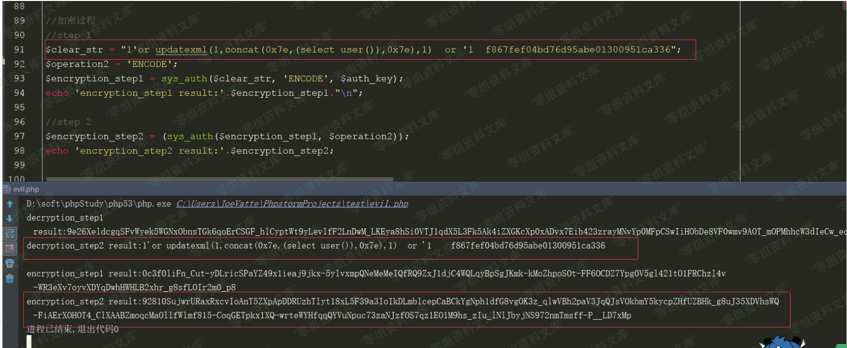 echo ‘decryption_step2 result:’.sys_auth($decryption_step2, ‘DECODE’, $auth_key).”\n”;