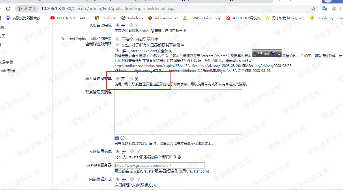 第一种,未授权代码执行利用条件:Jira已配置好SMTP服务器,且需开启“联系网站管理员表单”功能。(从WEB界面设计上看,实际上如果没配置SMTP服务器,无法开启此功能